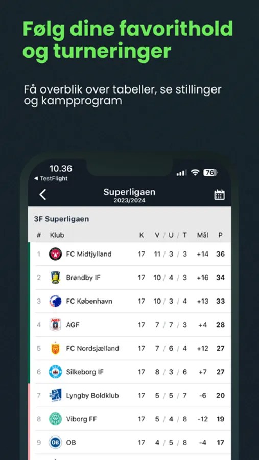 Du kan let personliggøre og skræddersy din oplevelse på appen ved at oprette en bruger, så du kan følge dine favoritklubber og altid få seneste nyt, opdatering på kampe og meget andet.