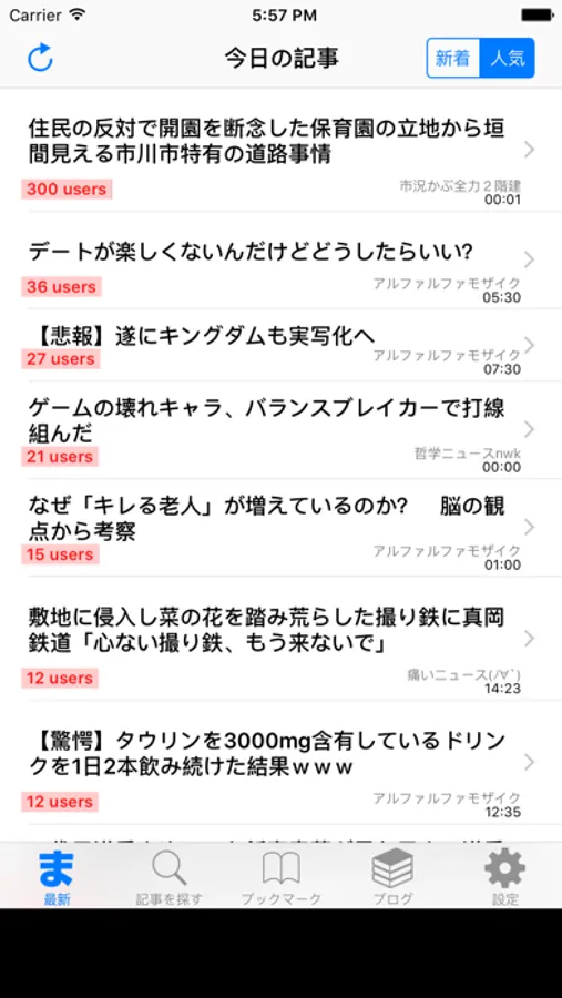 2chまとめをはじめとする100以上のまとめサイトの記事を『人気順』と『新着順』に閲覧できるアプリです。