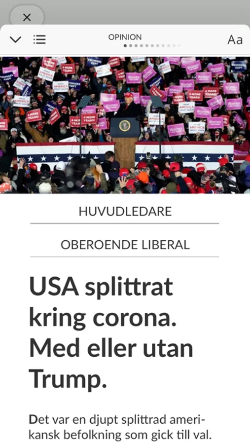 - Praktiskt artikelläge gör det enkelt att läsa och bläddra bland artiklar, även på små skärmar