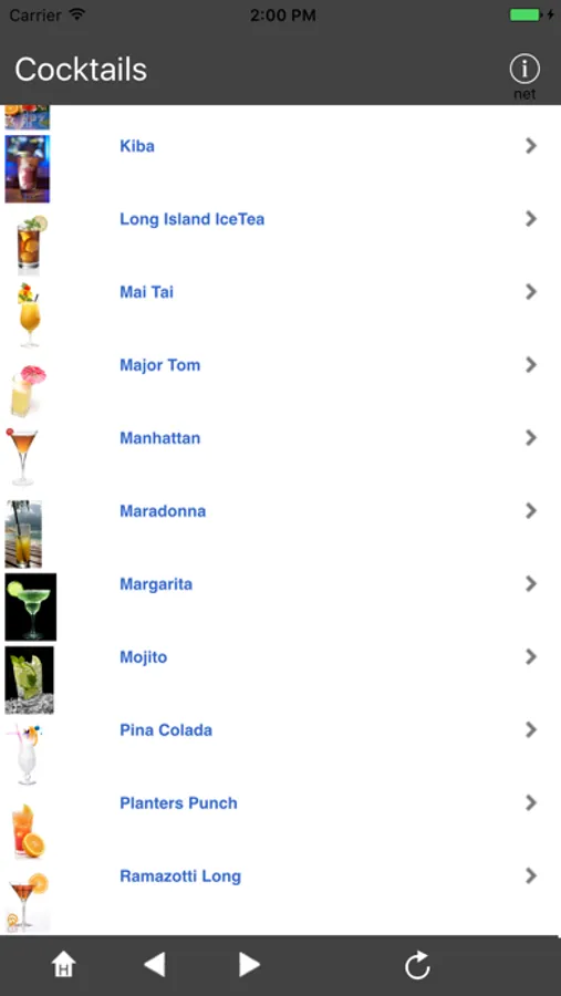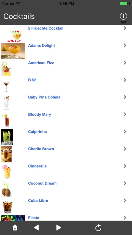 Das Programm beinhaltet 38 Cocktails aus aller Welt. Mit Hilfe der Zutaten und Beschreibung können Sie die Zubereitungen leicht selbst nachmachen und genießen.