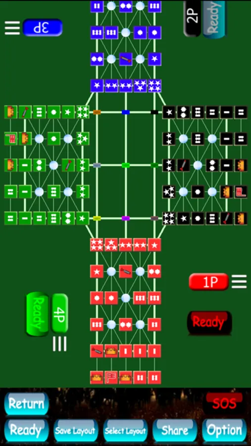 Elke zijde heeft 25 stuks van 12 verschillende soorten troepen. Twee kanten vechten als de ene groep tegen de andere groep.