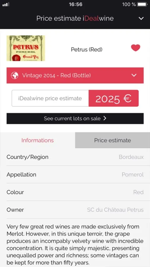 iDealwine price estimates are based on auction results and once downloaded, you’ll get access to millions of estimates without having to be connected.
