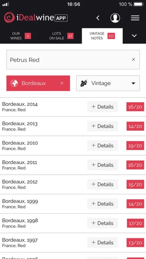 The app also offers you vintage charts region by region, food pairing recommendations and the latest news from the world of wine.