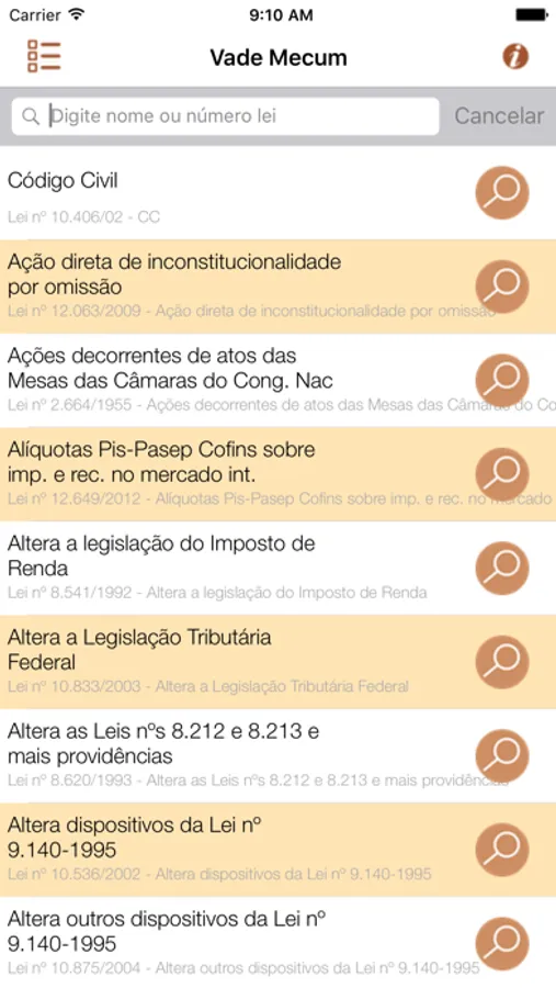 São mais de 950 textos legais: leis, códigos, decretos, súmulas etc...