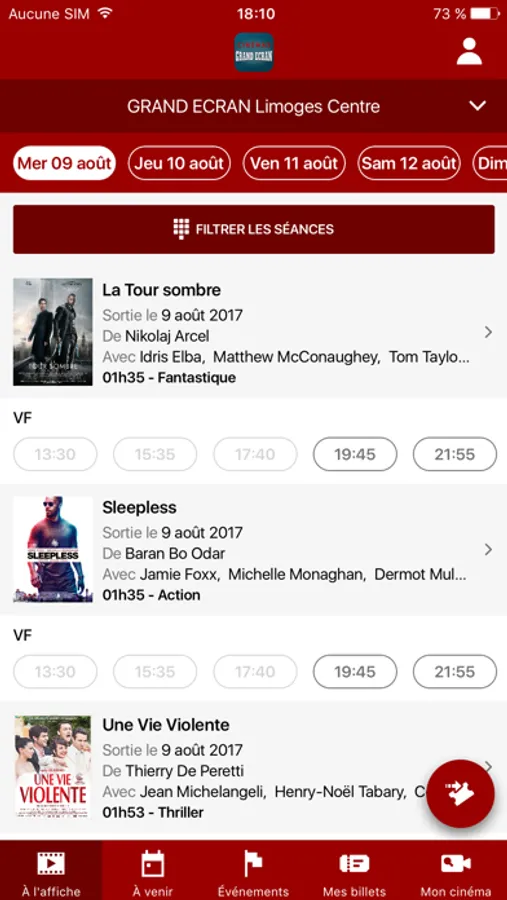 Découvrez tous les films à l’affiche, l’ensemble de vos séances, les films à venir mais aussi les événements de votre cinéma (Avants-premières, concerts, spectacles, événements spéciaux...)