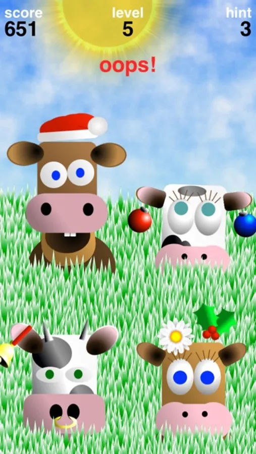 Simoo Seasons is a special seasonal version of Simoo. Simoo is a simple Simon says style game, with cows! Listen and watch the cows moo and repeat the pattern by tapping each cow in the right order.