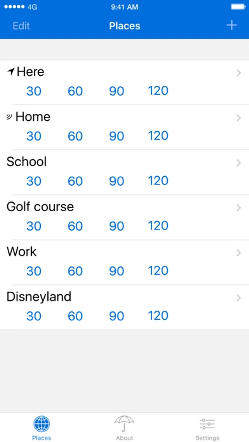 Rainspotting allows you to change the distance for finding nearby rain, the units used for the approaching rain speed, and specify whether to use the same colours that the source meteorological service uses for the profile chart.