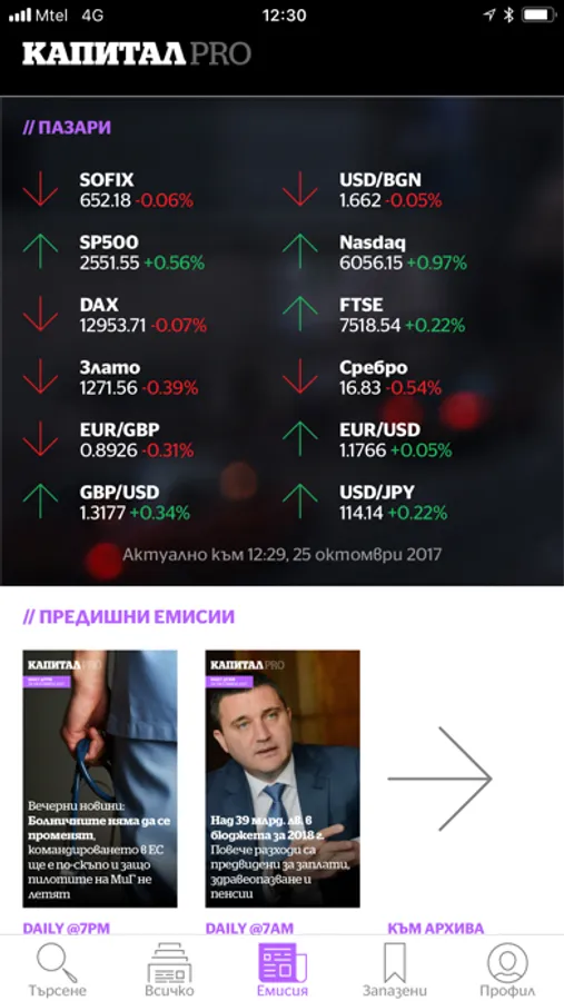 Всекидневна бизнес информация под формата на емисии. Емисиите се обновяват в началото и в края на работния ден, еднократно през уикенда, както и при извънредни събития