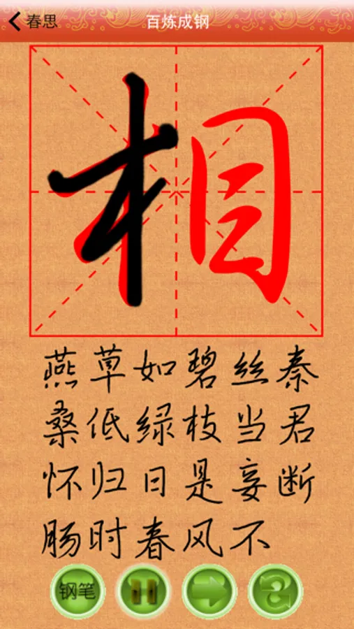 --通过不断的练习,您在不知不觉中掌握汉字的神韵,挥笔间就能写出漂亮的文字。