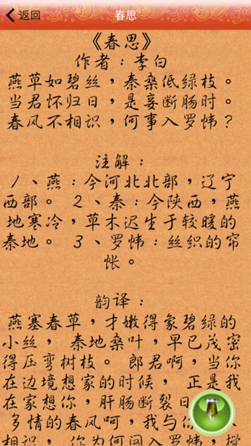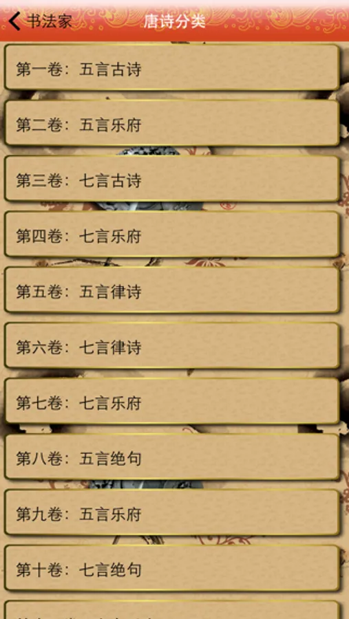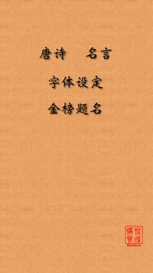 --《书法家》中内置了“唐诗”三百首,“名人名言”两千余条作为书法练习的范本,让您练习的过程中可以欣赏唐诗,阅读名言。
