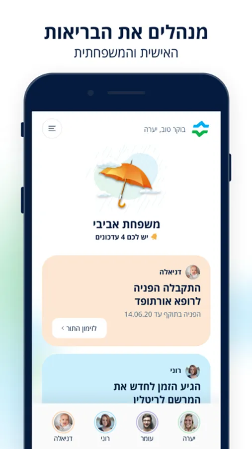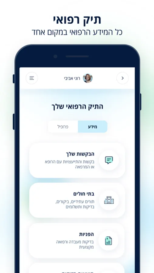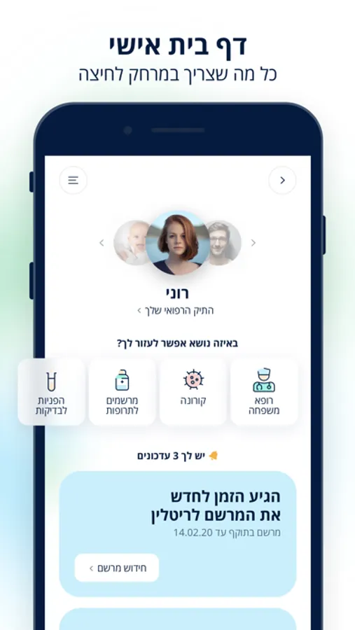 • עוזרים לכם לנהל את הבריאות - כרטיסיות אישיות שמציגות לכם את העדכונים החשובים ביותר ואת הפעולות שצריך לעשות.
