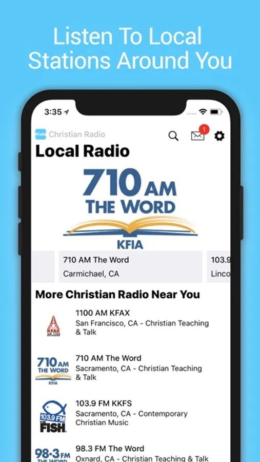 We will automatically match you with local Christian radio stations using the Geo-Location feature and listen to local Christian stations while at home, or away.
