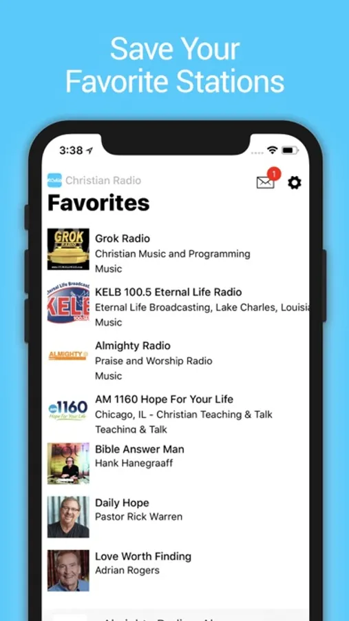 Save your favorite Christian radio stations to easily access programs and music you want to hear.