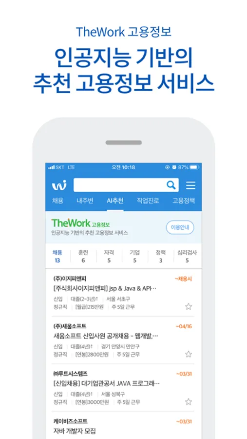 - 나의 맞춤정보 : 빅데이터 기반 The Work 추천 고용정보, 맞춤 채용정보 설정