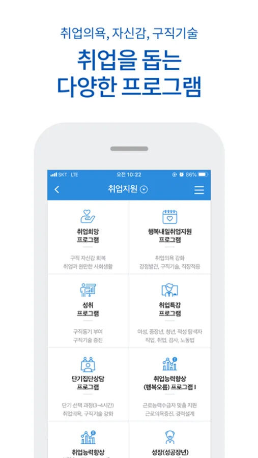 - 13가지 취업지원프로그램 신청 및 상담신청 서비스 제공