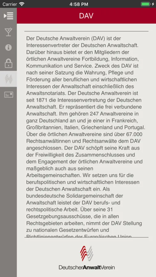 Die iPhone APP wurde von der e.Consult AG in Zusammenarbeit mit dem Deutschen Anwaltverein entwickelt und umgesetzt.