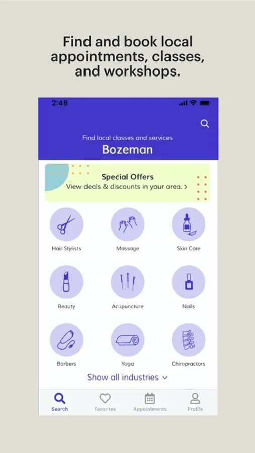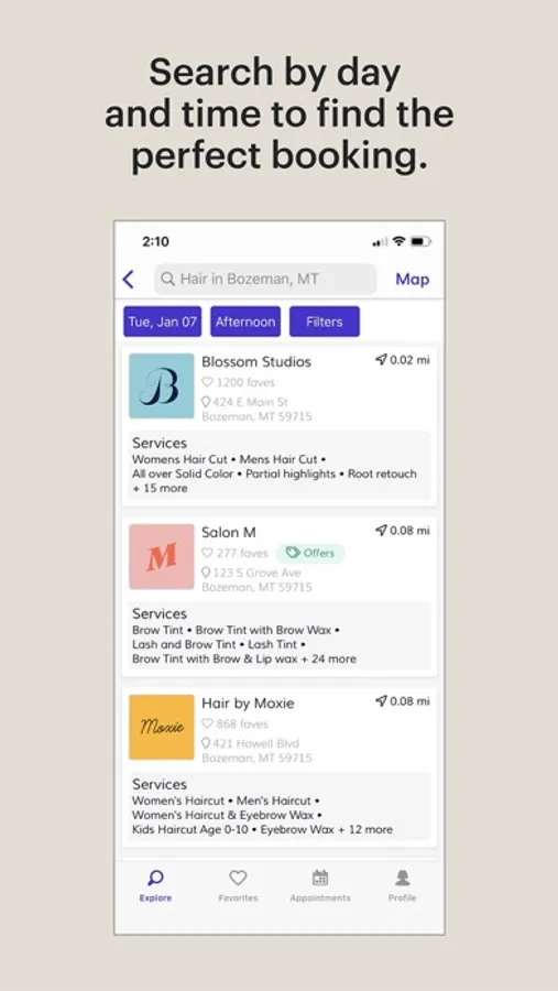 Schedule appointments for all your services from bang cuts to barre classes—all in one app. Because you’ve got more to do with your time than sit on hold with salons and studios.