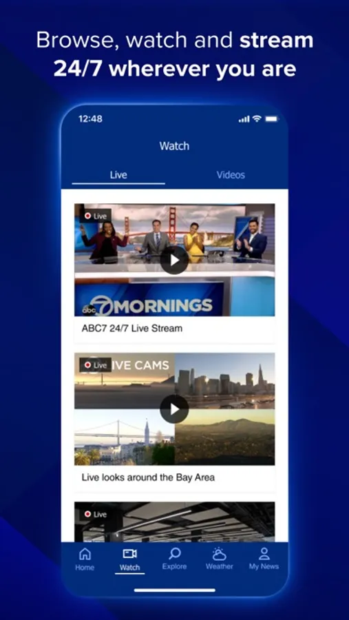 Stream live newscasts with the ABC7 Bay Area app. Stay up-to-date on local news and weather, along with national top stories. Plus, customize the app based on your interests.
