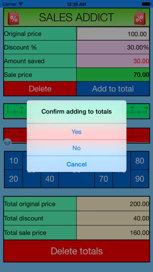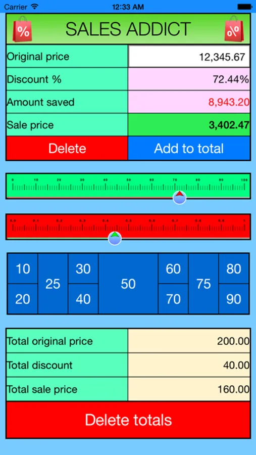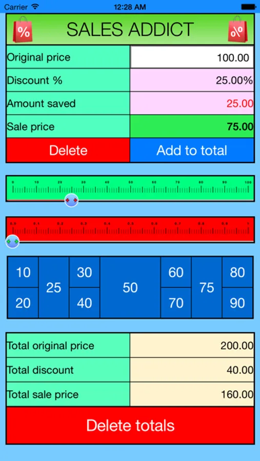 If you happen to come across a reduction outside the range predefined in the application, fear not, for all it takes is a quick swipe across the green scale to your choice of percentage - the scale covers the full range of rates from 0% to 100%.