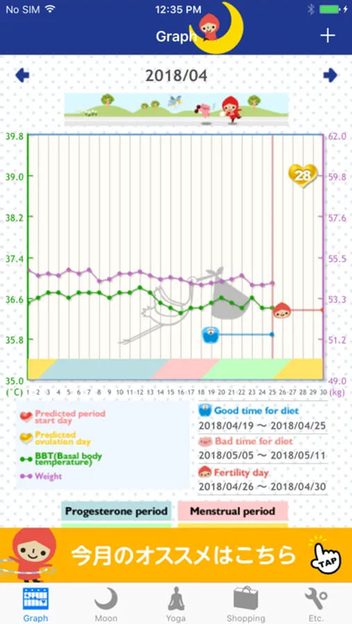 According to your menstrual cycle, it display the period makes you fat and slim.
