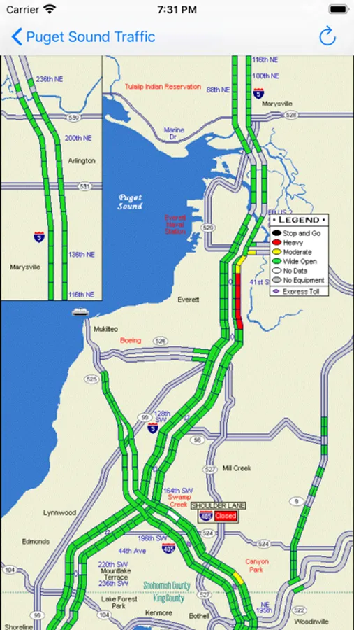 A quick and simple app to check traffic in the greater Puget Sound region. This app takes mobile traffic map pages from the WSDOT web page and displays them in a quick and easy to use manner. It allows you to view traffic quickly and easily without having to navigate the WSDOT mobile page to find exactly what you need. Call up the map you want quickly, on your walk from your desk to your car and plan your route home accordingly.
