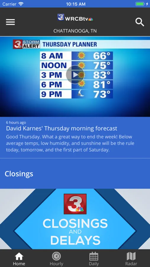 Current conditions, with information generated by the Local 3 Storm Alert Team, gives you a quick glimpse into what's going on outside right now. By scrolling down you can find conditions for the week ahead, our Live Stream, School Closings and new Traffic/Road Conditions.