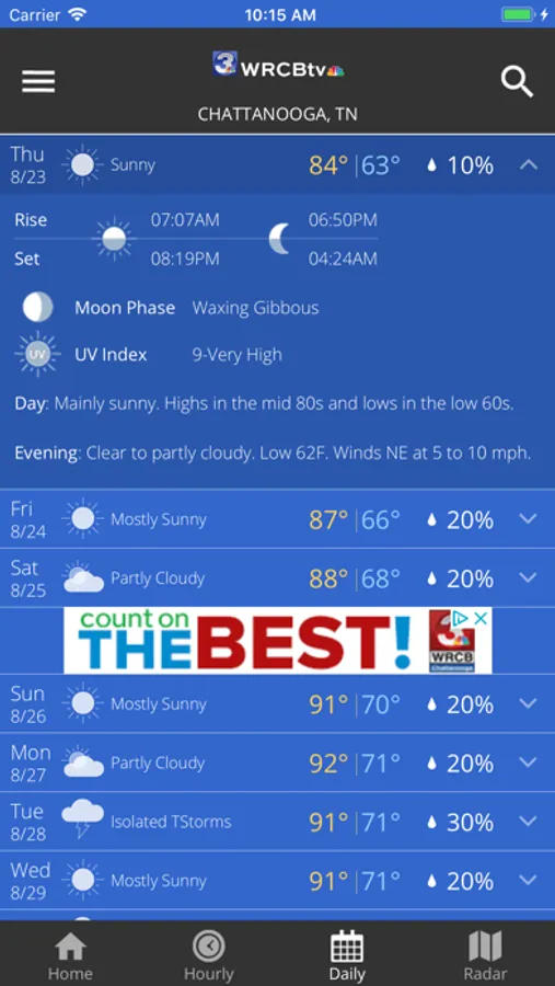 Be sure to turn on Alerts and enable Locations to be warned of dangerous weather in your locations. You'll be notified by our team of meteorologists and be prepared.