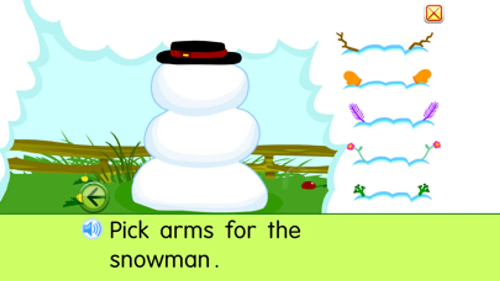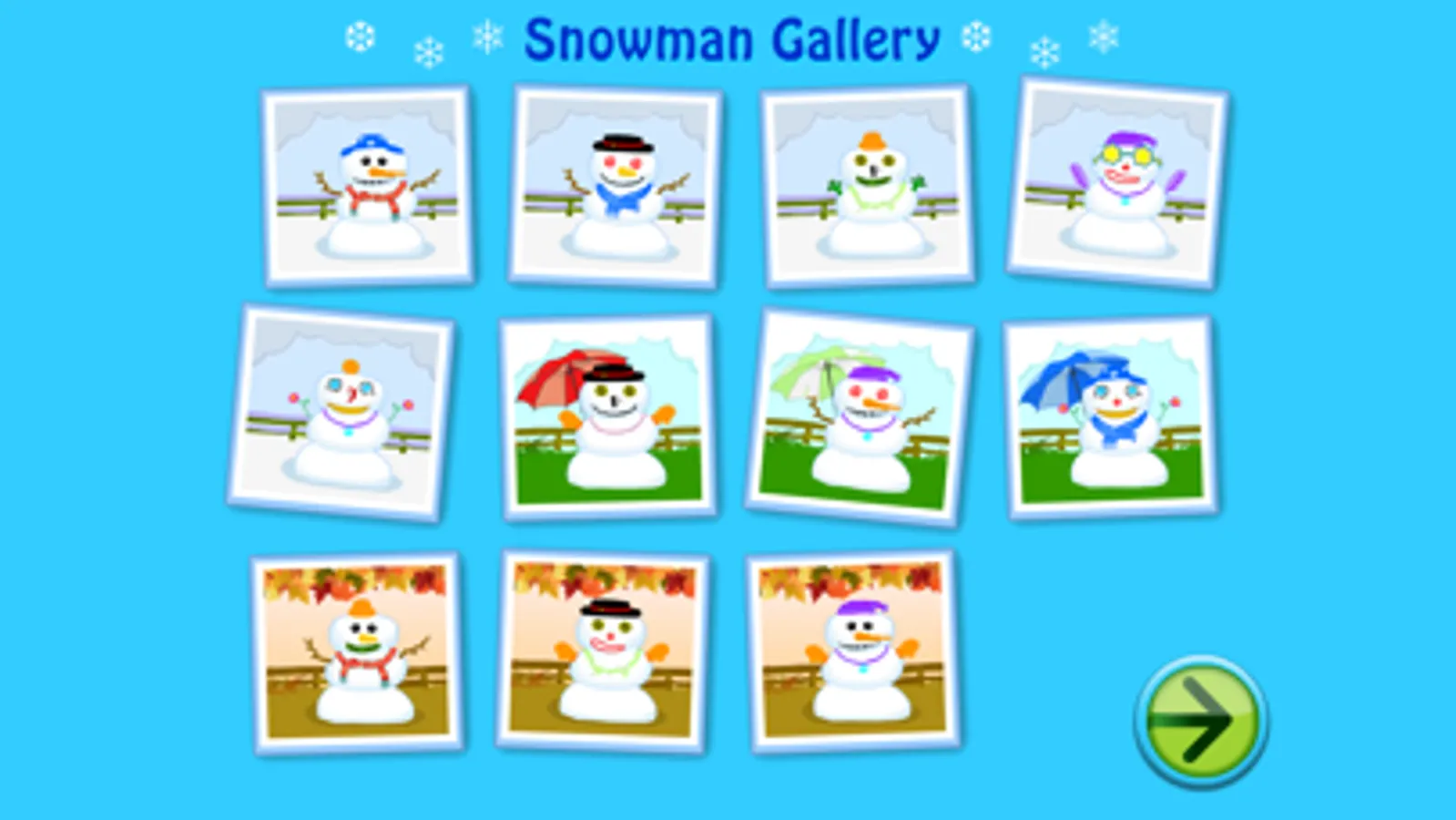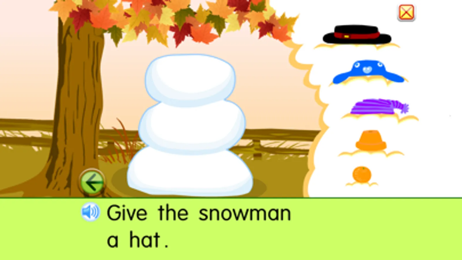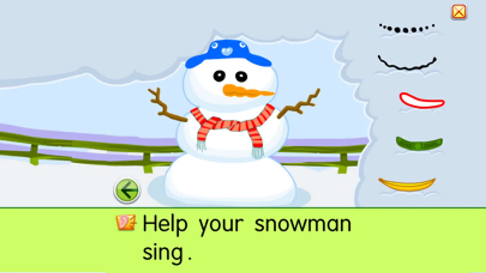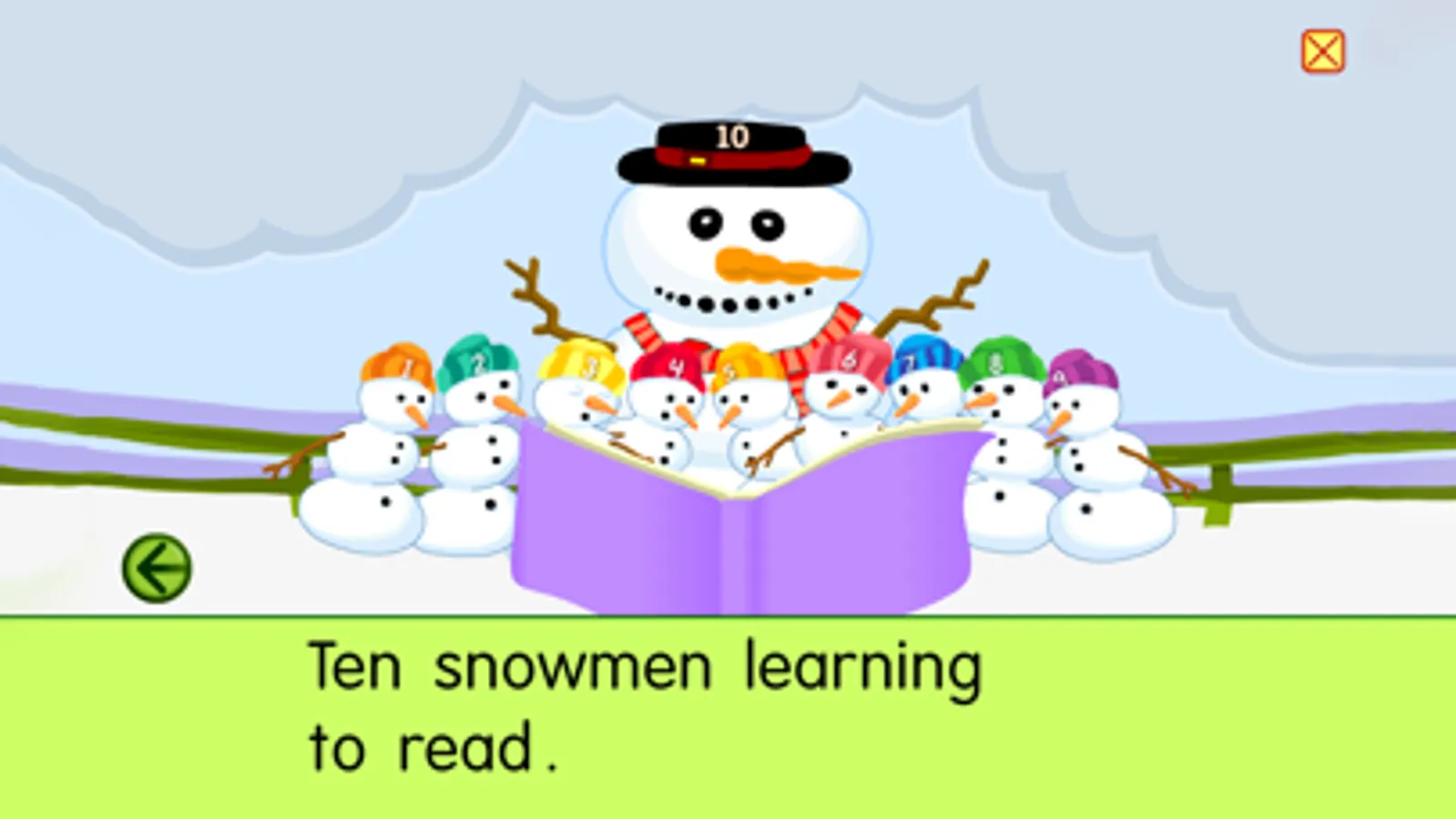 Children love making snowmen and listening to the charming “Ten Little Snowmen” song. Learn to count to ten and read essential vocabulary while you play. Practice has never been more fun! In this App edition, create a snowman gallery and match number sets to number symbols, and colors to color words.