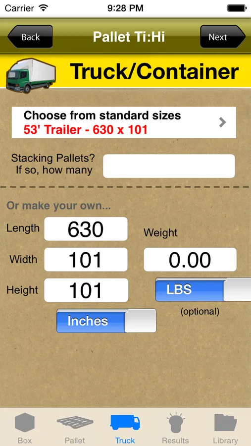 Anyone can figure out a pallet ti:hi now! Each function is totally customizable. Figure out any size box on any size pallet on any size shipping container. Using our advanced algarythem, Pallet Ti Hi will figure out the best way to layout and pack boxes on your pallet. Pack your pallet like never before.