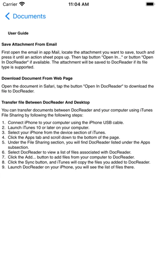 10. Transfer file between DocReader and desktop using iTunes file sharing