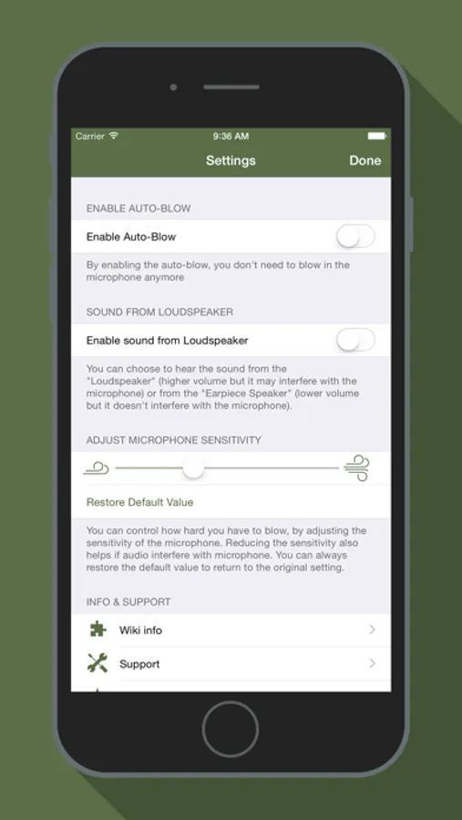1. gently blow into the microphone, the drones will start playing the typical background sound of the bagpipe;