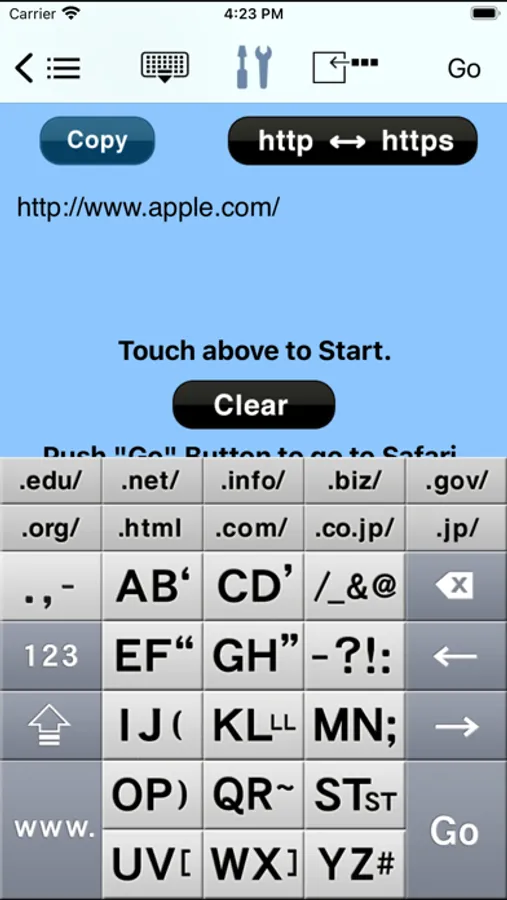 * Custom Keys to type “www.”, “.com/”, “.html”, “.net”, “.jp”, “.co.jp”,“.org” with a single touch