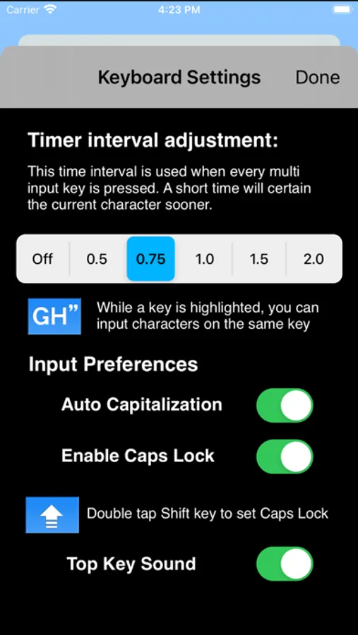 *Please note this keyboard appears and works IN THIS APP ONLY.