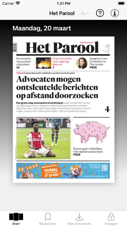 * U kunt de krant eerst downloaden en later offline lezen. Handig voor onderweg of op vakantie.