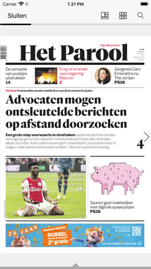 Lees nu het Parool, dé krant van Amsterdam. Voor iedereen die zich verbonden voelt met Amsterdam en wil weten wat er speelt in en rondom de hoofdstad, in Nederland én in de rest van de wereld.