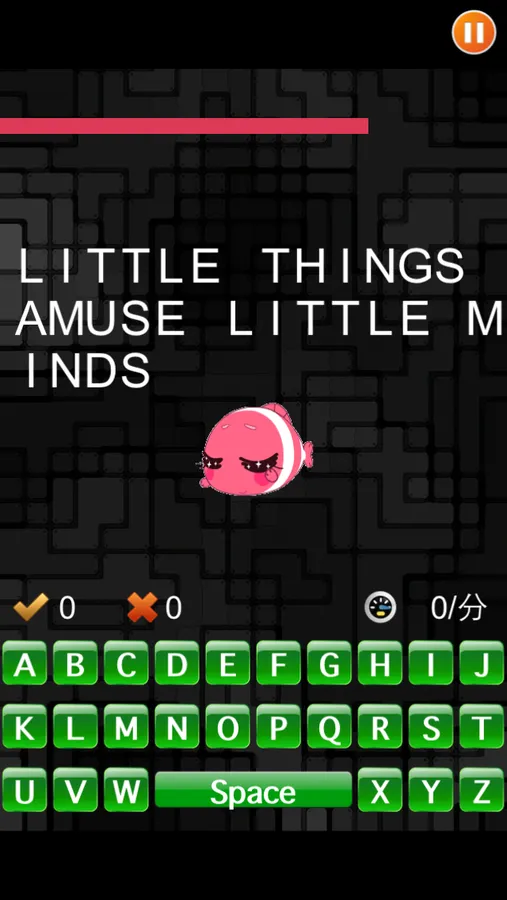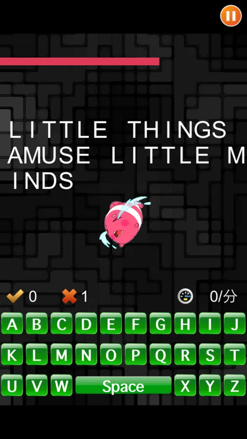It is a simple game for typing speed challenge.When the game begin, there are a lot of proverbs on the screen. Just tap the virtual keyboard to finish them. The keyboard layout will be reset every time when you tap the any key.