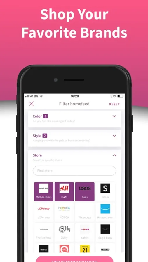 1. Home feed – on the Home Feed you can see endless outfit ideas based on your taste. Change your preferences in the Filter & shop for new pieces that complete your looks!