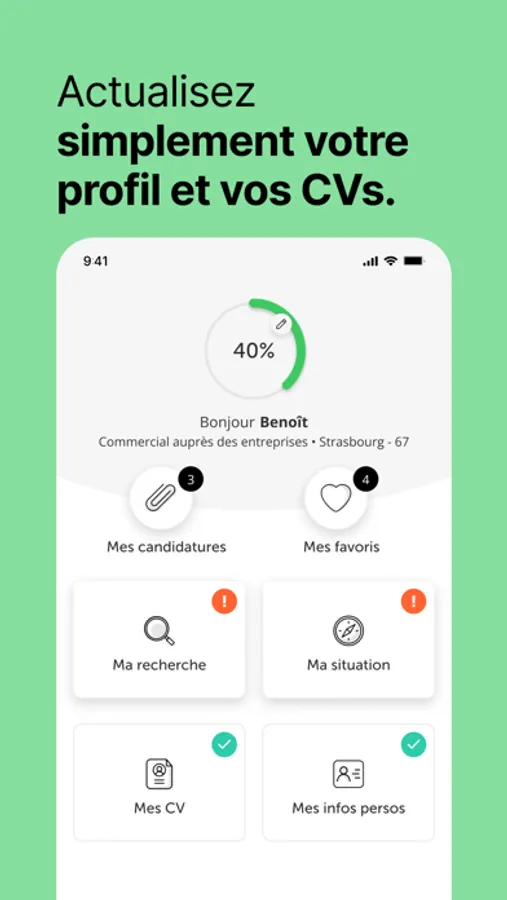 · SUIVRE MES CANDIDATURES : Votre application est synchronisée en live avec le site. Suivez en toute transparence vos candidatures et les réponses des recruteurs partout, à tout moment.
