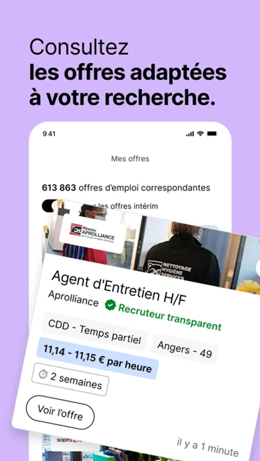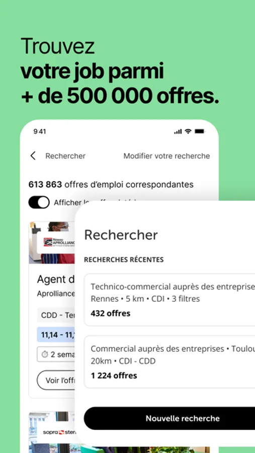 · ACCÉDER A LA MEILLEURE OFFRE, celle qui correspond à votre profil : en quelques instants effectuez votre recherche et trouvez les postes à pourvoir dans votre région. Découvrez instantanément le salaire, les possibilités de télétravail, le processus de recrutement et les avantages proposés par l’entreprise.