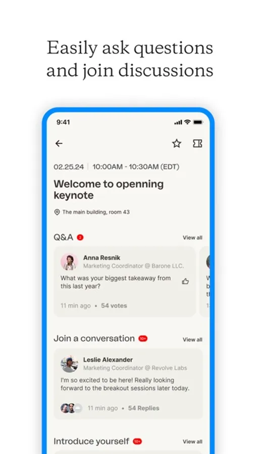 Review the event agenda, find session locations, read up on speaker bios, see who else is attending your event, participate in polls and more—all from the palm of your hand.