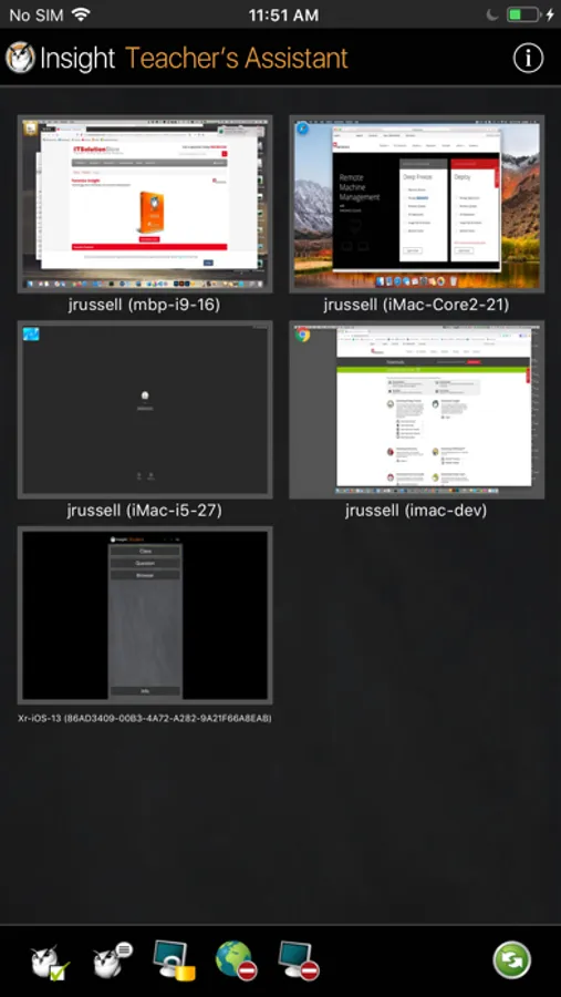 The Teacher’s Assistant will display re-sizable high color thumbnails of the student computers.