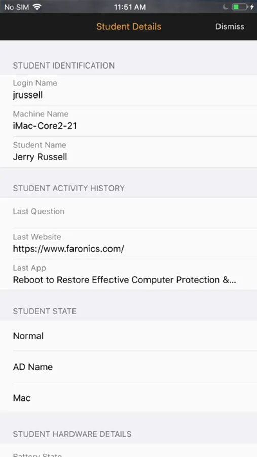 To view the details about a student such as their battery information, last used application, and last visited website, tap a thumbnail twice.