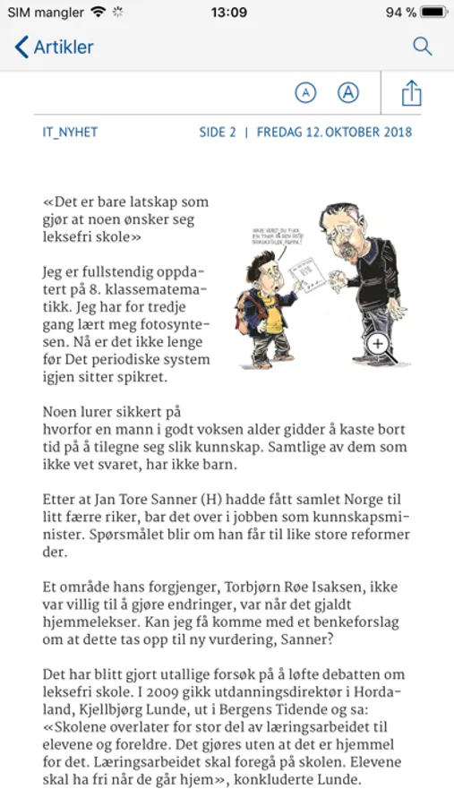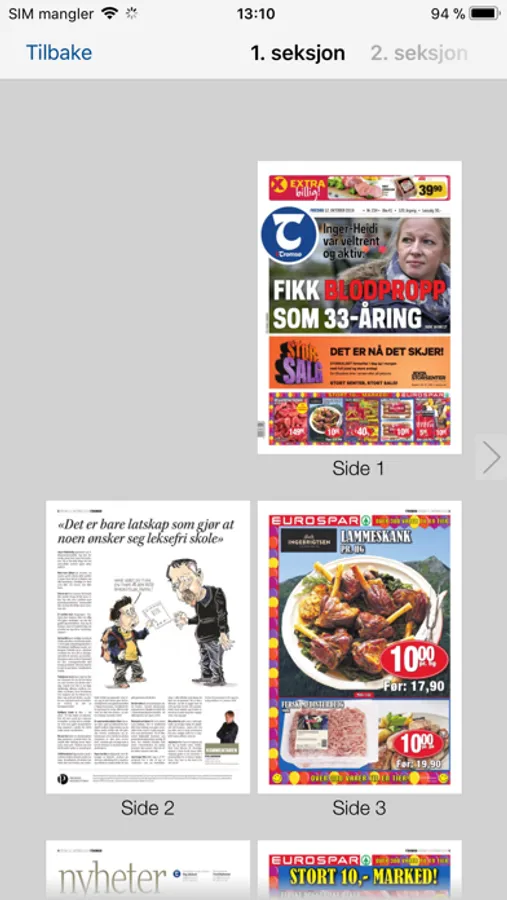 - Mulighet for å bla gjennom sidene, zoome inn på bilder og artikler.