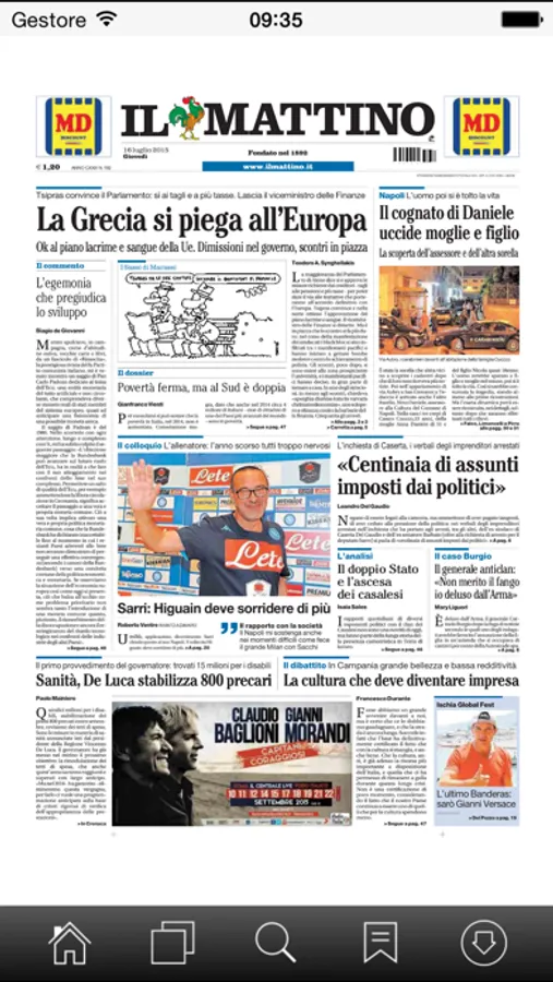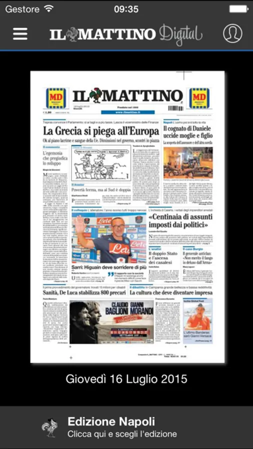 Le news del quotidiano e le edizioni di Napoli, Avellino, Benevento, Caserta, Circondario Nord, Salerno, Circondario Sud2, consultabili fin dalle prime ore del mattino direttamente sul tuo iPad e iPhone non solo online ma anche offline una volte scaricate. E ogni giorno dalla MEZZANOTTE Il Mattino anticipa per i suoi Lettori l'edizione integrale del Giornale di Domani pubblicata solo in digitale.