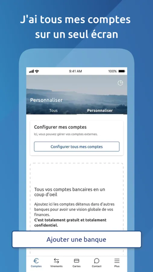 - Visualisez tous vos comptes, même ceux d’autres établissements bancaires sur un seul écran pour avoir une vue d’ensemble de vos finances avec le nouveau service d’agrégation de comptes.