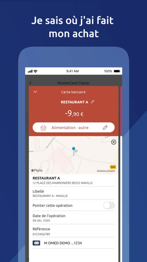 - Contrôlez facilement vos dépenses grâce à la géolocalisation et les intitulés simplifiés de vos transactions.