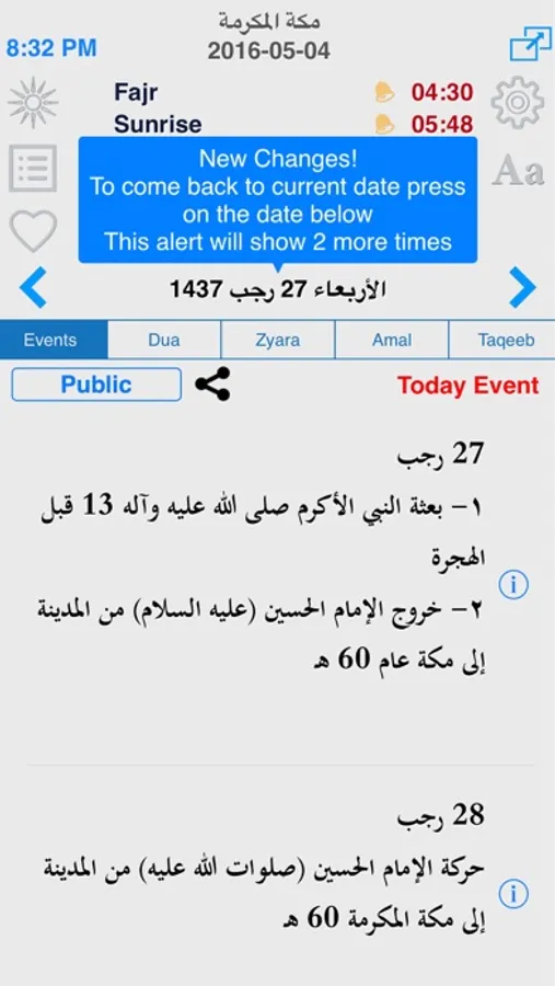 برنامج مواقيت الصلاة و مناسبات الشيعة