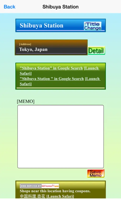 - know more information about shops and facilities with "Detail" button, and helps it easier to find the detail with searching word of the shop and facility!