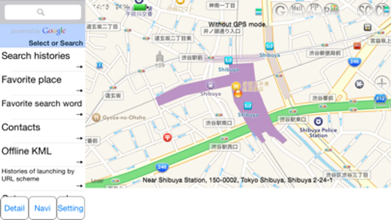 - find places easier. You only tap a keyword in the list menu. The frequently used keywords are registered with long press the menu (search histories), and call "Favorite search word".