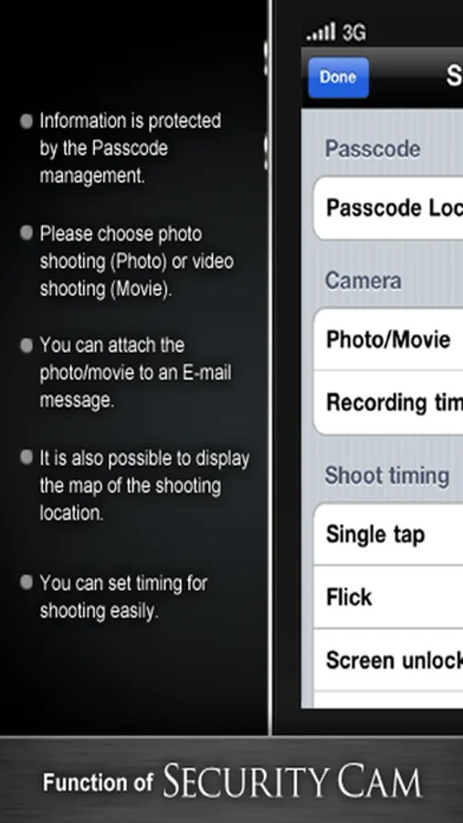 You can set a 4 digit passcode to gain access to photos/movies saved in the application